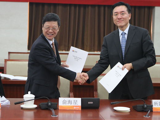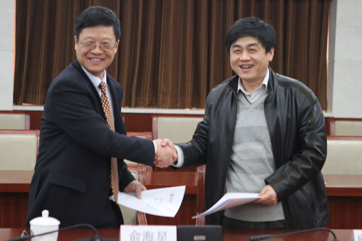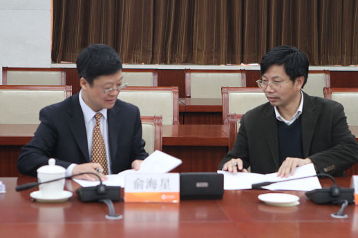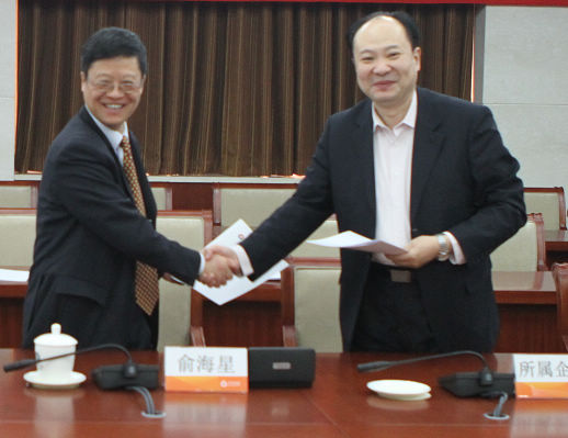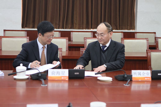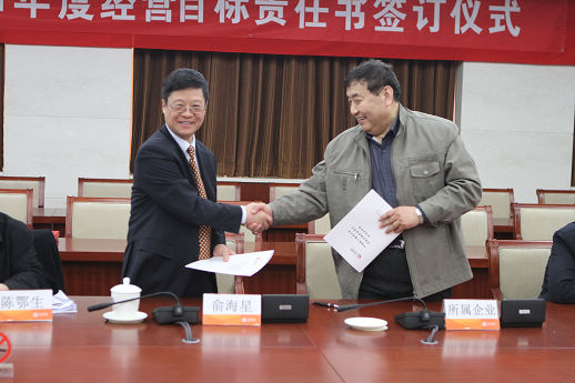 俞海星總經(jīng)理與海誠股份總裁嚴(yán)曉儉簽訂責(zé)任書
