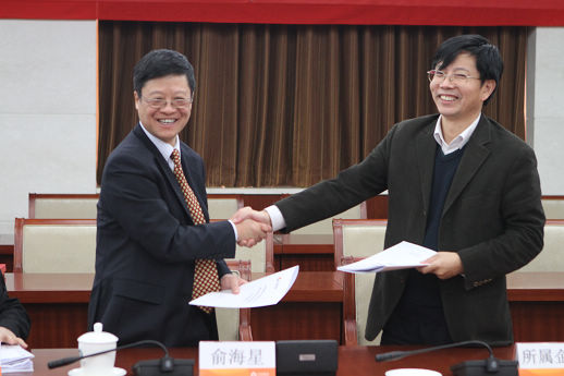 俞海星總經(jīng)理與日化院院長王萬緒簽訂責(zé)任書