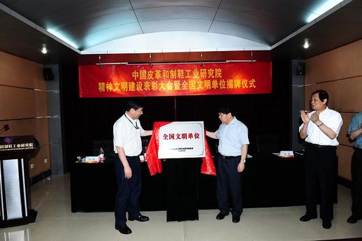2012年6月8日,中國(guó)皮革和制鞋工業(yè)研究院召開(kāi)精神文明建設(shè)先進(jìn)集體和先進(jìn)個(gè)人表彰大會(huì)暨全國(guó)文明單位揭牌儀式,集團(tuán)公司董事長(zhǎng)、黨委書(shū)記陳鄂生,黨委副書(shū)記、紀(jì)委書(shū)記梁江東,皮革制鞋院院長(zhǎng)、黨委書(shū)記楊承杰,副院長(zhǎng)田美,黨委副書(shū)記、副院長(zhǎng)宋昕以及集團(tuán)公司人力資源部負(fù)責(zé)同志及全院職工出席了會(huì)議。會(huì)議由皮革制鞋院宋昕主持。