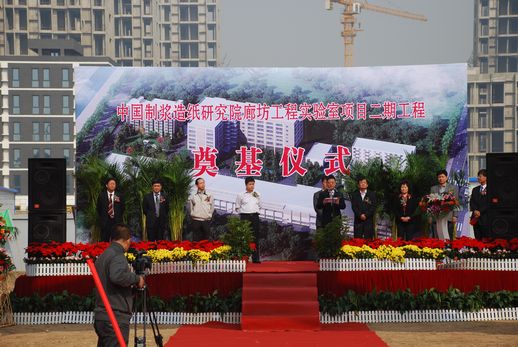 2012年10月12日,俞海星總經(jīng)理出席了中國制漿造紙研究院廊坊工程實(shí)驗(yàn)室項(xiàng)目二期工程開工奠基儀式。俞總在致辭中對造紙?jiān)豪确豁?xiàng)目建設(shè)工作給予了充分肯定,對長期以來關(guān)心和支持中輕集團(tuán)發(fā)展,特別是關(guān)心和支持該項(xiàng)目籌備實(shí)施的廊坊市各級領(lǐng)導(dǎo)和部門表示了感謝,并向?yàn)楣こ涕_工付出辛勤勞動的一線干部職工表示了慰問。他希望項(xiàng)目承建單位要切實(shí)增強(qiáng)緊迫感和責(zé)任感,嚴(yán)格工程管理,確保安全、質(zhì)量和進(jìn)度,力爭把項(xiàng)目建設(shè)成為廊坊科技谷的標(biāo)志性、樣板性工程。中國制漿造紙研究院院長曹春昱和廊坊科技谷有關(guān)領(lǐng)導(dǎo)也分別在儀式上致辭。
