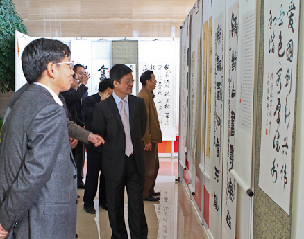 集團(tuán)總經(jīng)理俞海星等領(lǐng)導(dǎo)在觀看書(shū)法作品