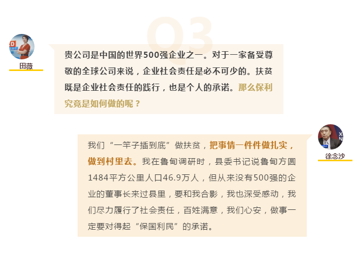 兩會期間,全國政協(xié)委員,中國保利集團有限公司黨委書記、董事長徐念沙接受中央廣播電視總臺CGTN World Insight節(jié)目專訪,講述保利脫貧攻堅責(zé)任舉措。