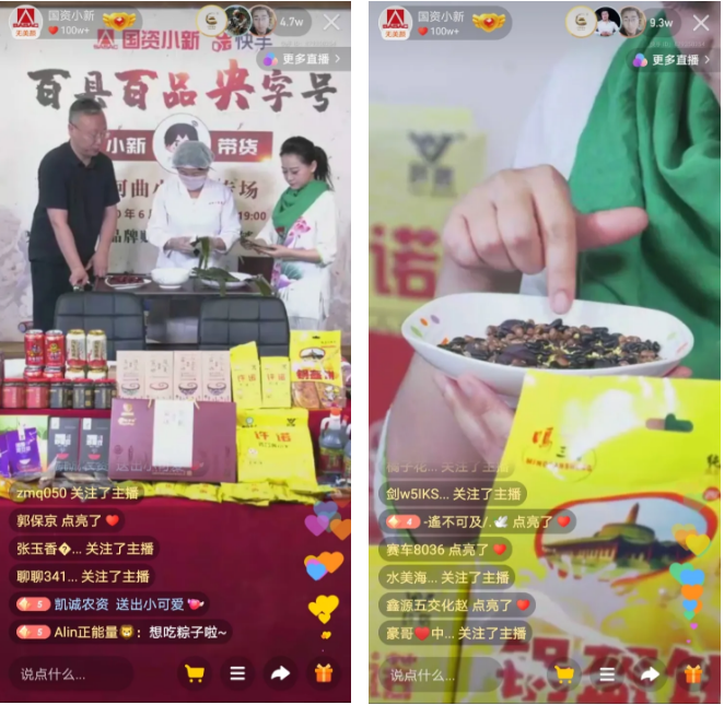 直播現(xiàn)場(chǎng)包粽子、品雜糧粥