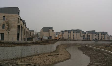 該項(xiàng)目總用地面積約為13.20萬平方米。其中規(guī)劃道路以西為B7地塊,基地面積約為8.93萬平方米。B8地塊位于規(guī)劃河道以東,基地面積約為4.27萬平方米,總建筑面積155132.48平方米,工程概算投資49058.4428萬元,共83棟單體(多棟3層聯(lián)體建筑及多棟3層單體建筑組成)。其中多棟3層聯(lián)體建筑與地下車庫連為一體。另有1棟配套商業(yè)用房,商業(yè)用房地上3層+地下一層,地下一層為人防地下室